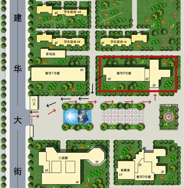 戏剧影视导演类面试(命题即兴表演、文学作品朗诵考试),考试楼位于音乐学院(即红星标记处)。