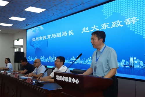 遵化市教育局副局长张海山致欢迎辞。张局长首先向莅临大赛指导的各位领导和专家评委表示崇高的敬意!向参加此次大赛的指导教师、参赛的同学们表示热烈的欢迎!他指出,职业院校技能大赛,是对职业学校技能教学水平的大检阅,是学生综合职业素质的大展示,是落实立德树人根本任务的重要途径;同时表示,遵化职校必将坚持“公平、公正、公开”的办赛原则,以有序、周到服务,高水平的做好大赛各项工作,为参赛师生提供舒适、放心的技能展示平台;最后真诚希望各位领导、专家和老师们能对我市职业教育工作多提宝贵建议,共同促进遵化职业教育高质量发展!
