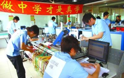 三年来,学院不断出台政策和措施,鼓励各系部结合实际,大力探索创新实践,以任务引领和企业真实项目为载体,参照行业企业技术标准,由专业教师与企业专家共同改革教育教学内容、开发实训设备、编写校本教材、建设实训实践基地,形成了各具特色多形式的人才培养模式。应用电子技术专业形成了“工学交替、循序递进”的板块式人才培养模式、通信技术专业形成了“校企联动,工学融合”全程订单式为主的人才培养模式、计算机网络技术专业形成了“全程项目、多层次工学结合”人才培养模式等等。