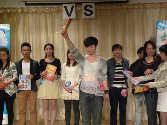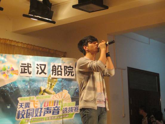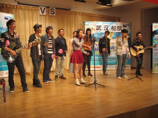 继9月13日武汉船院郭志祥同学参加校园好声音抽签仪式后,“用我的声音做你的眼睛”大型校园公益行动天翼飞YOUNG声援团校际PK赛于10月23日晚7点在武汉船院大学生活动中心四楼隆重举行。由武汉船院对阵武汉大学,最后武汉船院十强选手以微弱优势险胜武汉大学。